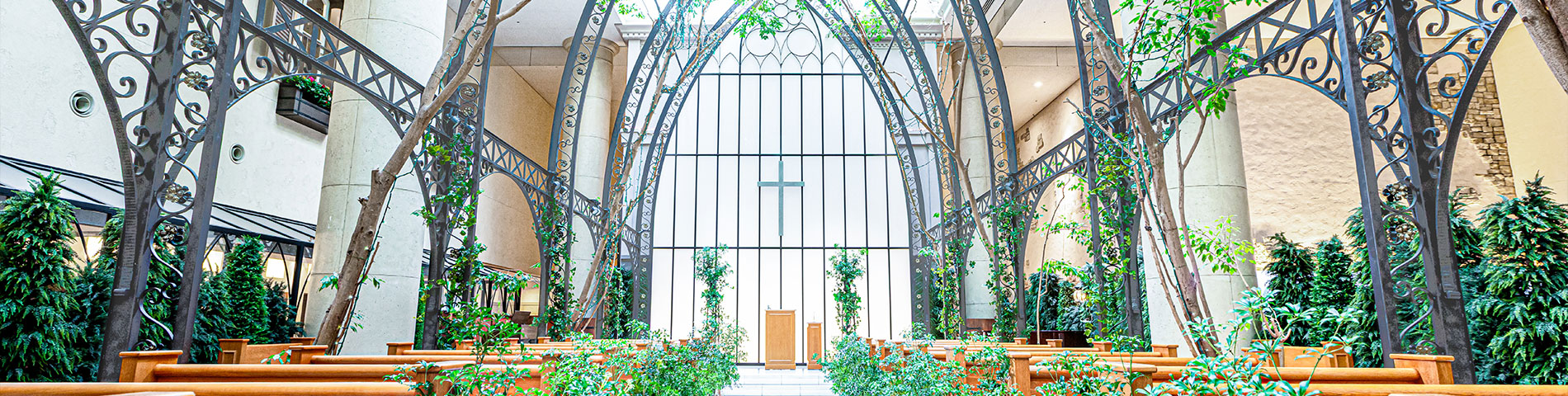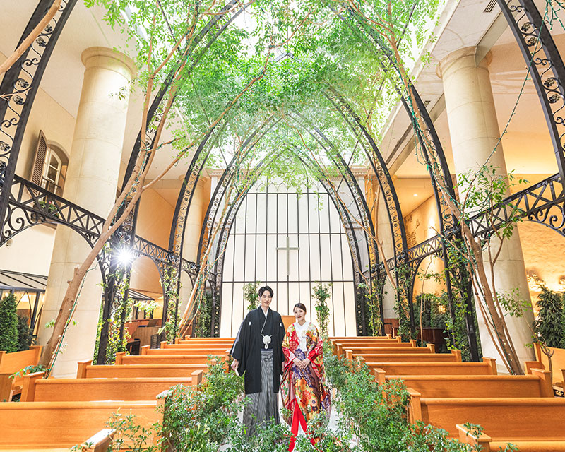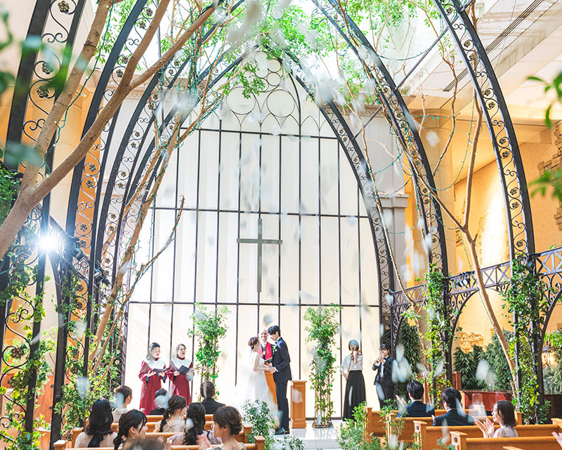 ベンジャミンの木々にぬくもり溢れるチャペルで